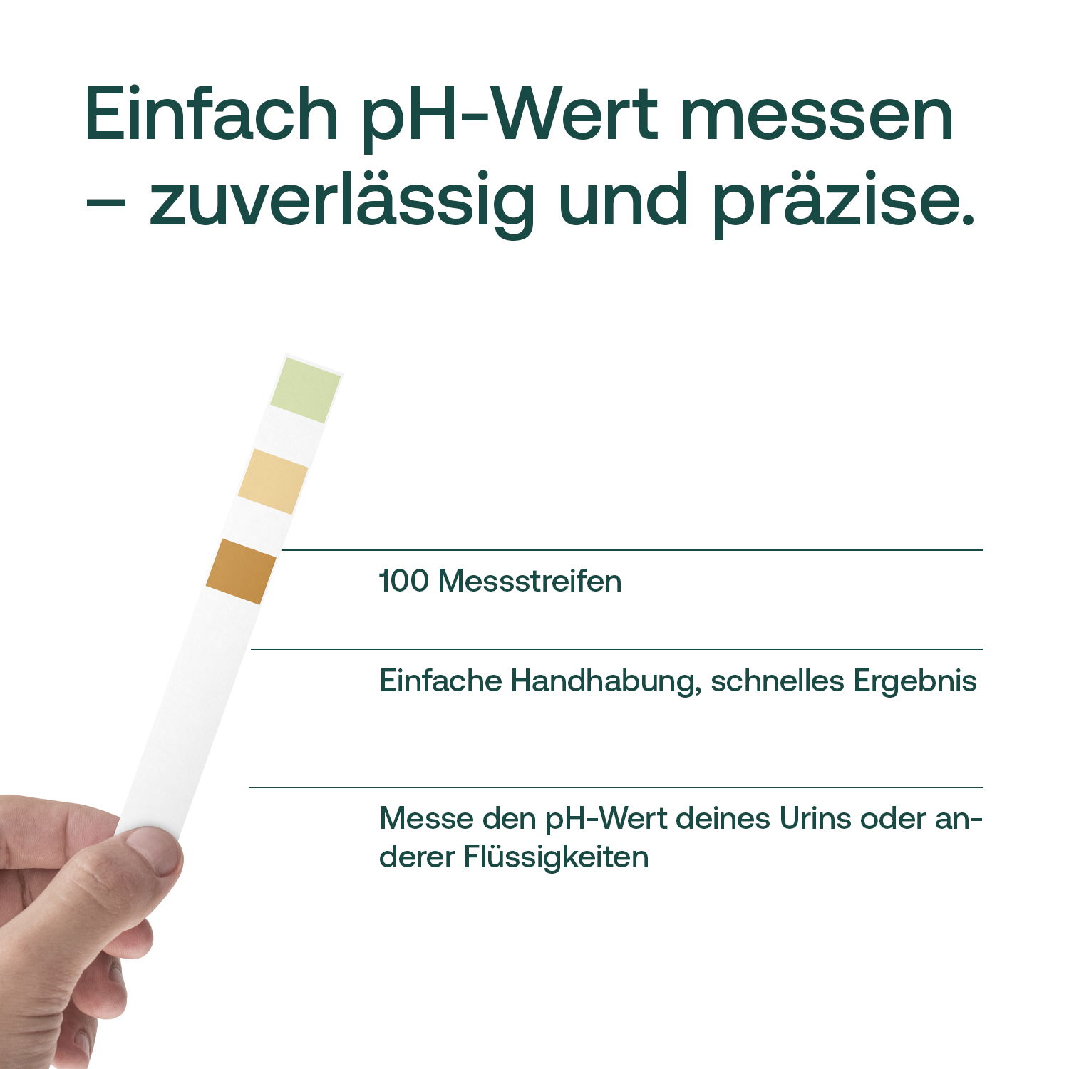 Die Testreifen sind klasse in der Handhabung und messen auch sehr genau. Durch die drei Farben kann man den Wert sehr gut ablesen.